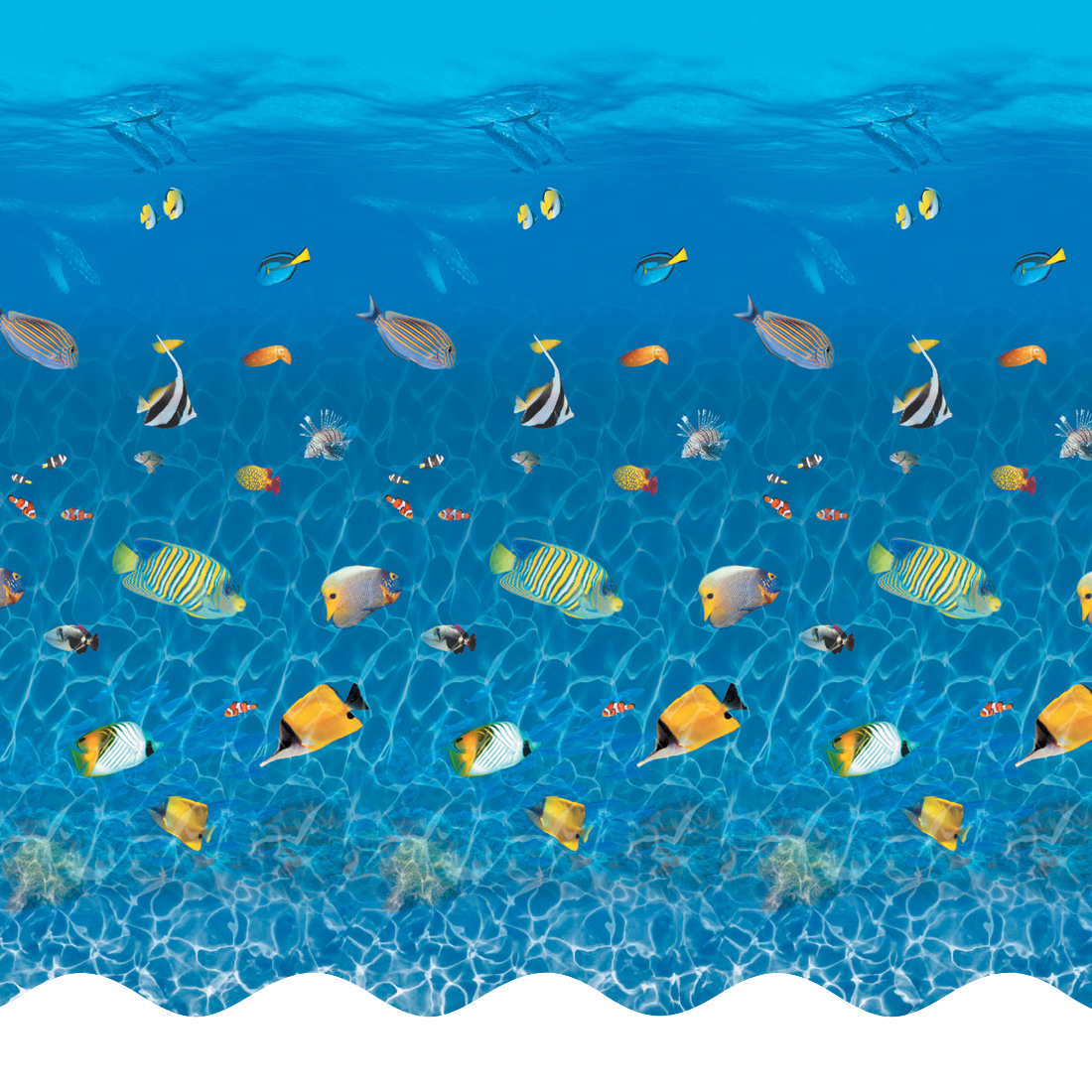Exotic fish swim around the walls of your swimming pool with the SmartLine® Caribbean liner print.